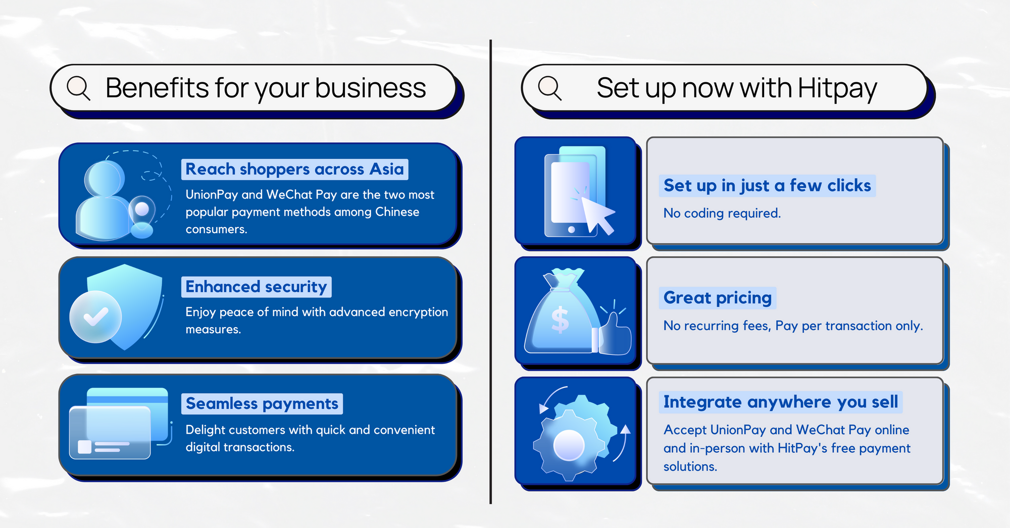 For businesses in Singapore, accepting WeChat Pay can unlock the Chinese market, provide enhanced security measures, and offer a seamless payment experience for customers. Integrating WeChat Pay on your website is a straightforward process with HitPay's upcoming integration (launching Q2: 2024).