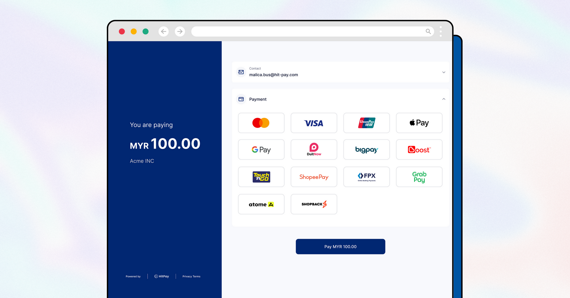 Unlike global payment gateways (PayPal), HitPay allows you to pay with local payment methods like FPX, DuitNow, GrabPay, and Shopback PayLater. HitPay also accepts international and local credit cards.