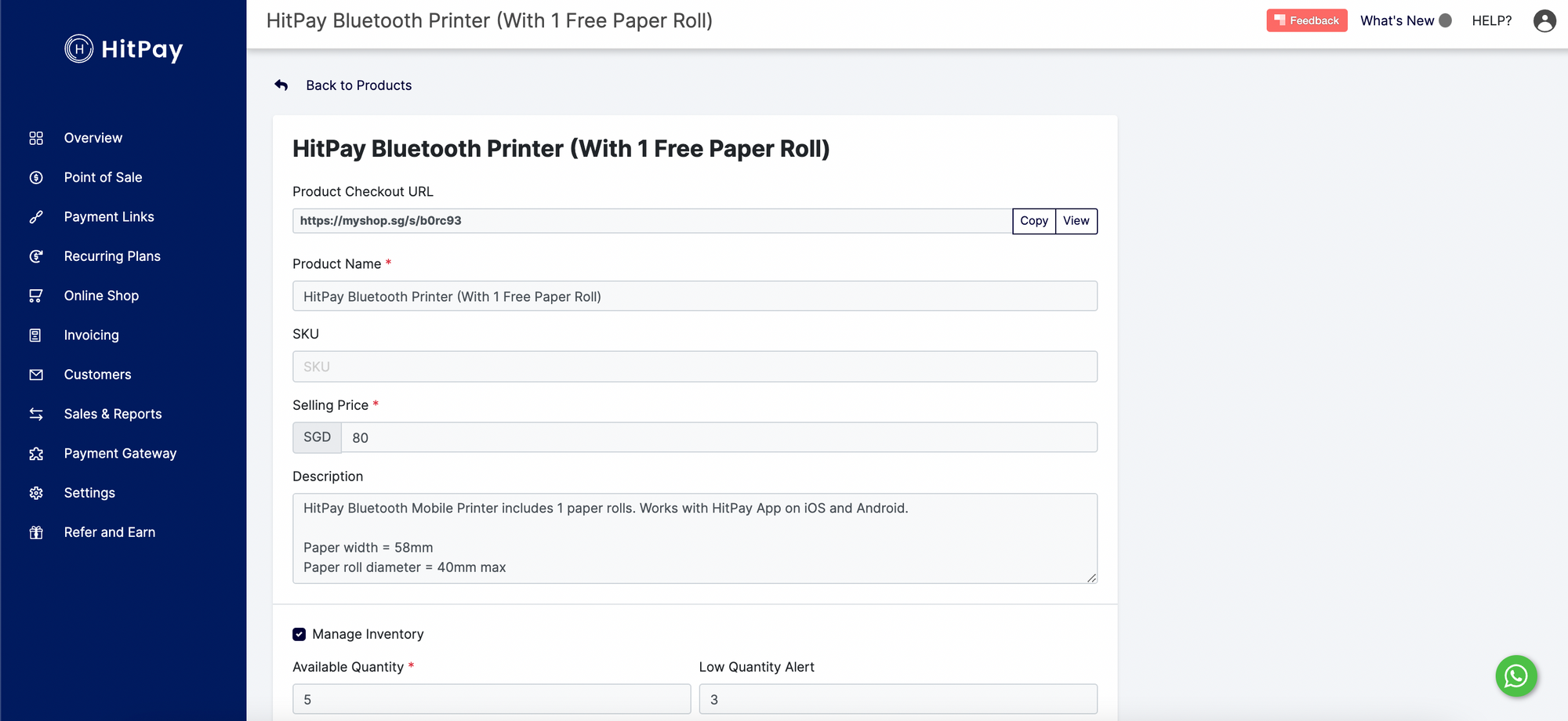 Sign up for a HitPay account and let us handle inventory management for you.