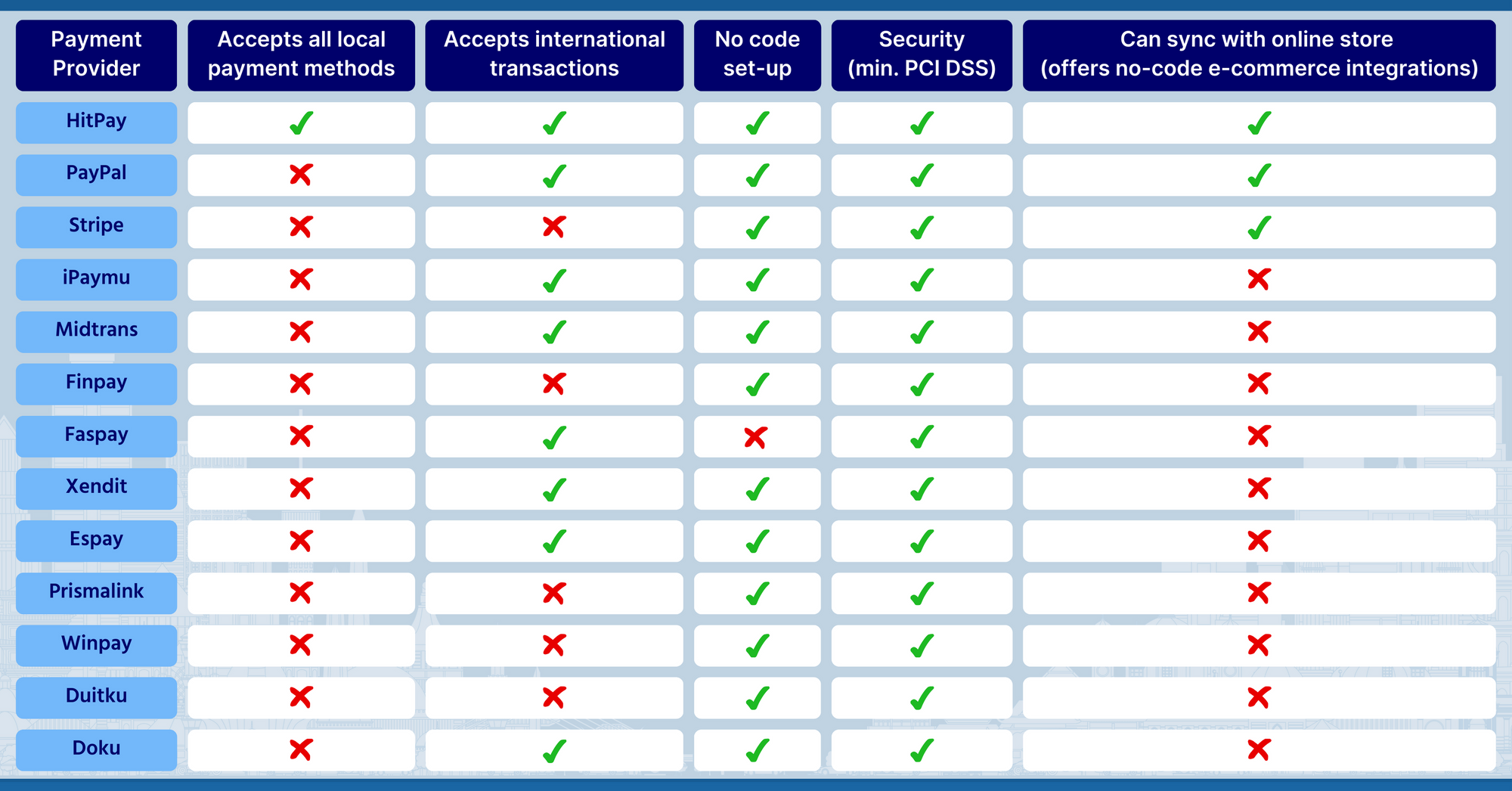 For more details about HitPay's pricing and available payment methods in Indonesia, go here.