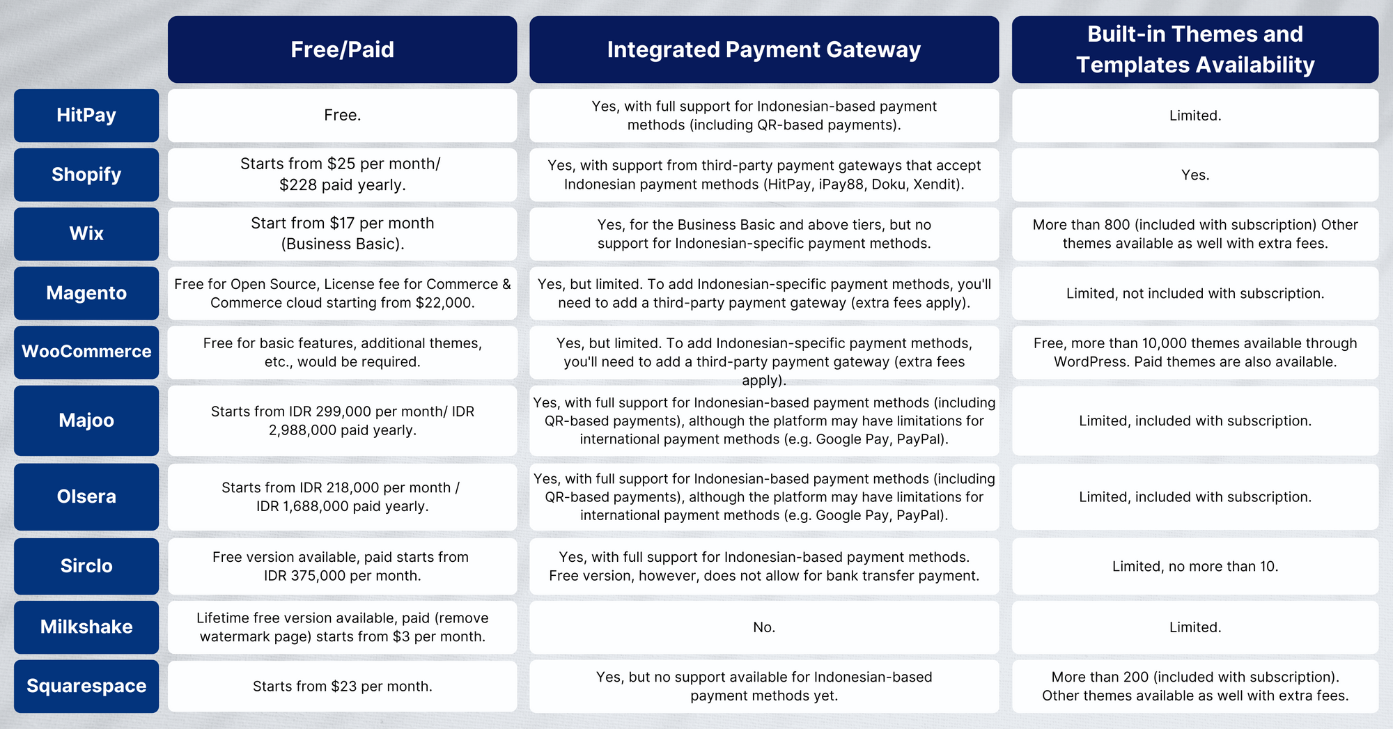 Paid or free website builders can be a major upgrade to your online business if you’re used to selling through Indonesian online marketplaces. But should you choose major global players such as Wix and Shopify or Indonesian ones such as Sirclo and Majoo? Here we highlight the pros and cons of what the most popular online store builders have to offer, including HitPay.