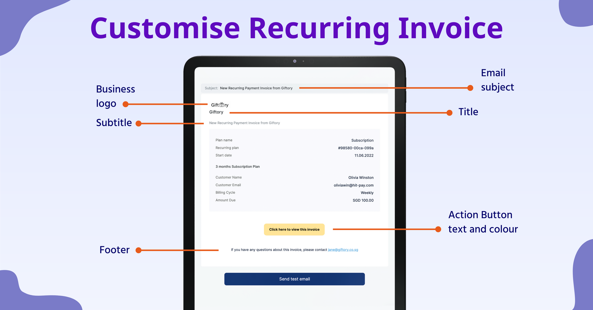 - Easily create and test emails. After creating your template, you can click 'Send test email' to see how your email will look. If you'd like to go back to the default email by HitPay, simply click 'Revert to default' followed by 'Save changes'.