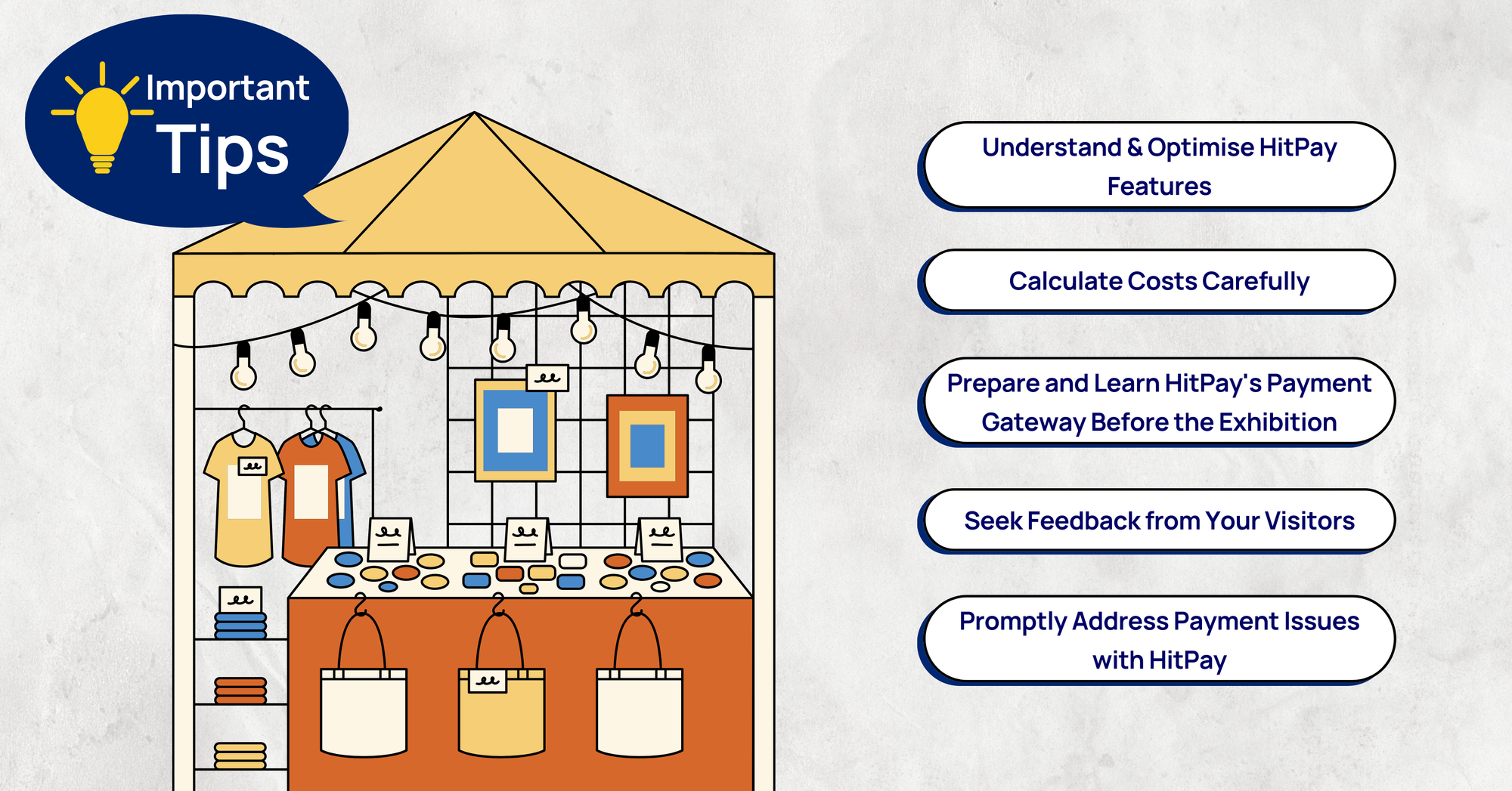 Before determining product prices, meticulously study all the costs involved, including shipping and other expenses related to selling in Singapore. Make sure to incorporate these costs into the product price to ensure a suitable profit margin. - Prepare and Learn HitPay's Payment Gateway Before the Exhibition: