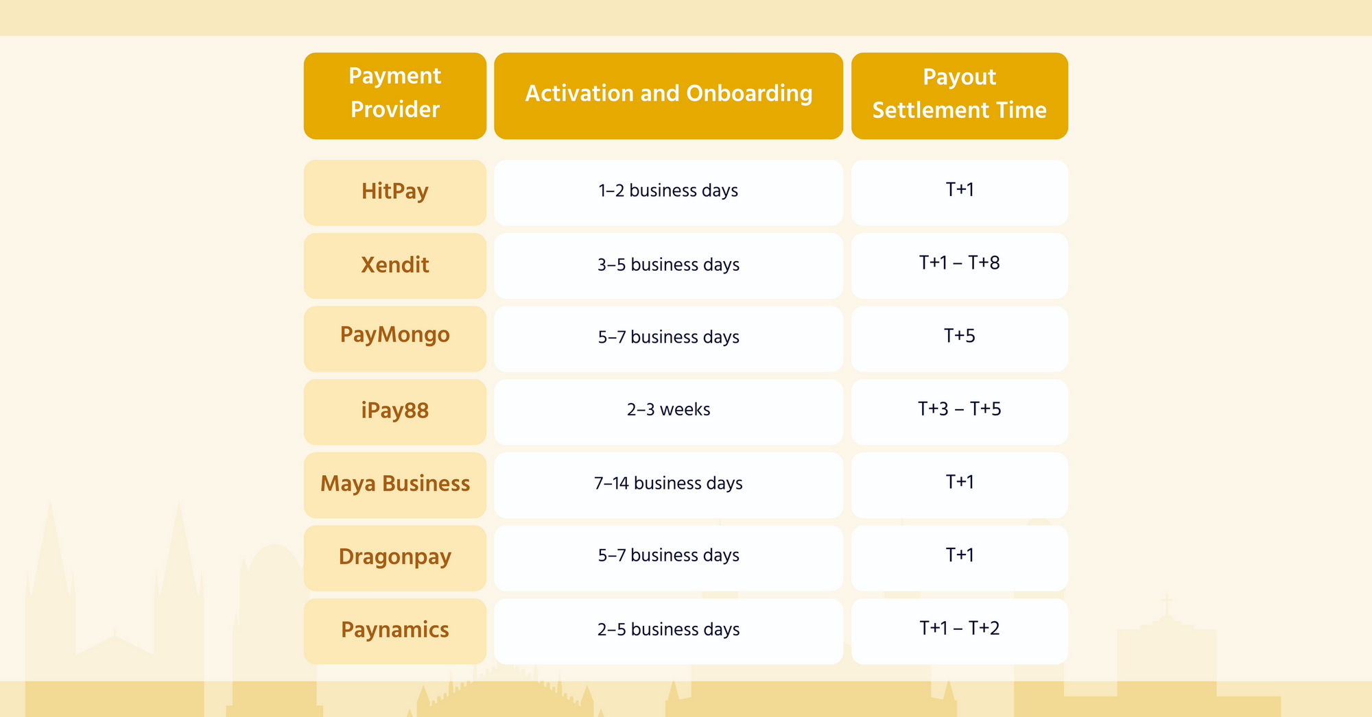 iPay88 Philippines is an enterprise-focused payment gateway in the Philippines that offers integrations with popular e-commerce platforms. However, SMEs may find iPay88 less suitable for their needs due to the long settlement period and limited options for popular local payment methods.