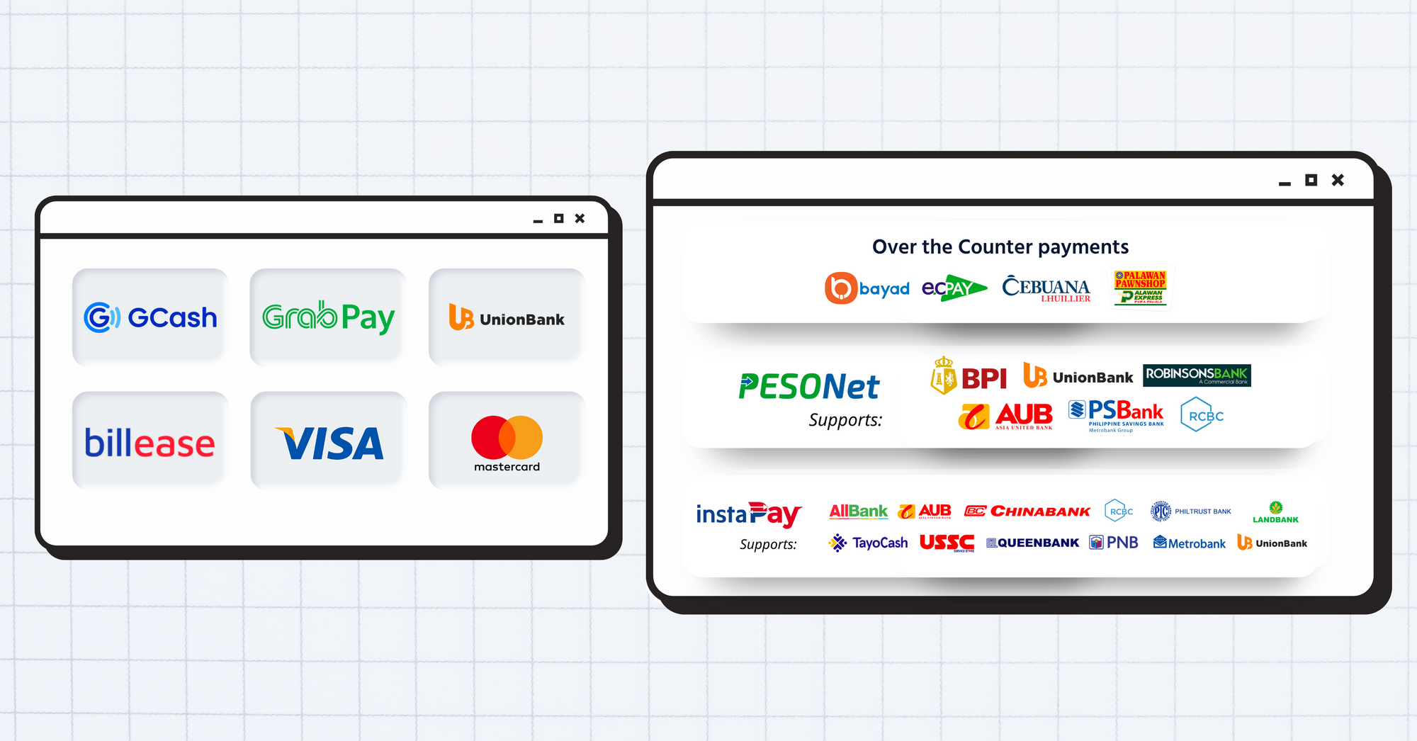 Firstly, HitPay supports a wide range of popular payment methods, making it convenient for customers to complete their transactions. HitPay helps you accept credit cards (Visa, Mastercard), UnionBank bank transfers, InstaPay QR PH, PESONet, over-the-counter payments, Buy Now Pay Later options like Billease, and even GrabPay. By offering multiple payment options, you can cater to a broader customer base and potentially increase sales conversions.