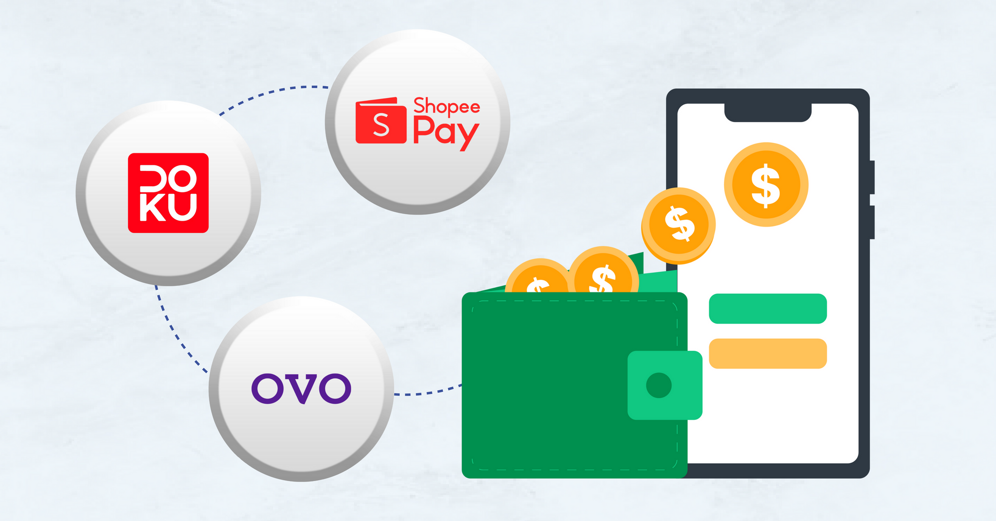 Sebagaimana di berbagai penjuru dunia, e-wallet populer di Indonesia sebagai sarana penyimpanan dana sementara bagi pelanggan. Mulai dari berbelanja di supermarket hingga membayar tagihan listrik, pelanggan di Indonesia sering menggunakan e-wallet dalam kehidupan sehari-hari mereka, dan beberapa nama-nama terkenal yang menawarkan layanan ini adalah OVO, GoPay, DANA, dan Doku.
