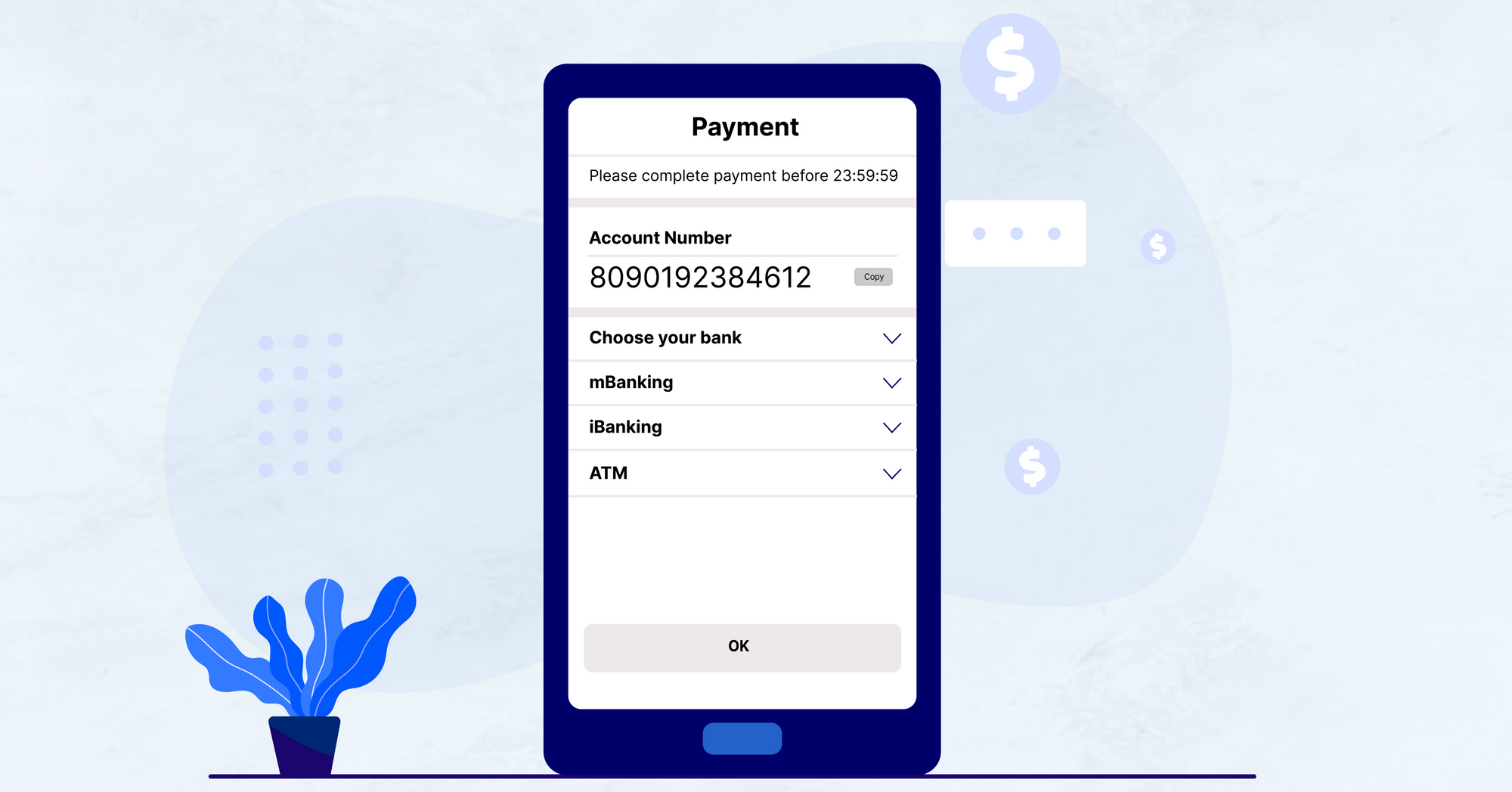 Salah satu bentuk pembayaran tanpa tunai ini adalah melalui pembayaran dengan kode QR, seperti dengan OVO atau ShopeePay. Ada pula mungkin pelanggan Anda yang lebih suka melakukan pembayaran melalui transfer bank — tetapi bukan hanya ke nomor rekening usaha Anda, namun juga ke nomor virtual account yang ditujukan khusus untuk satu pelanggan.