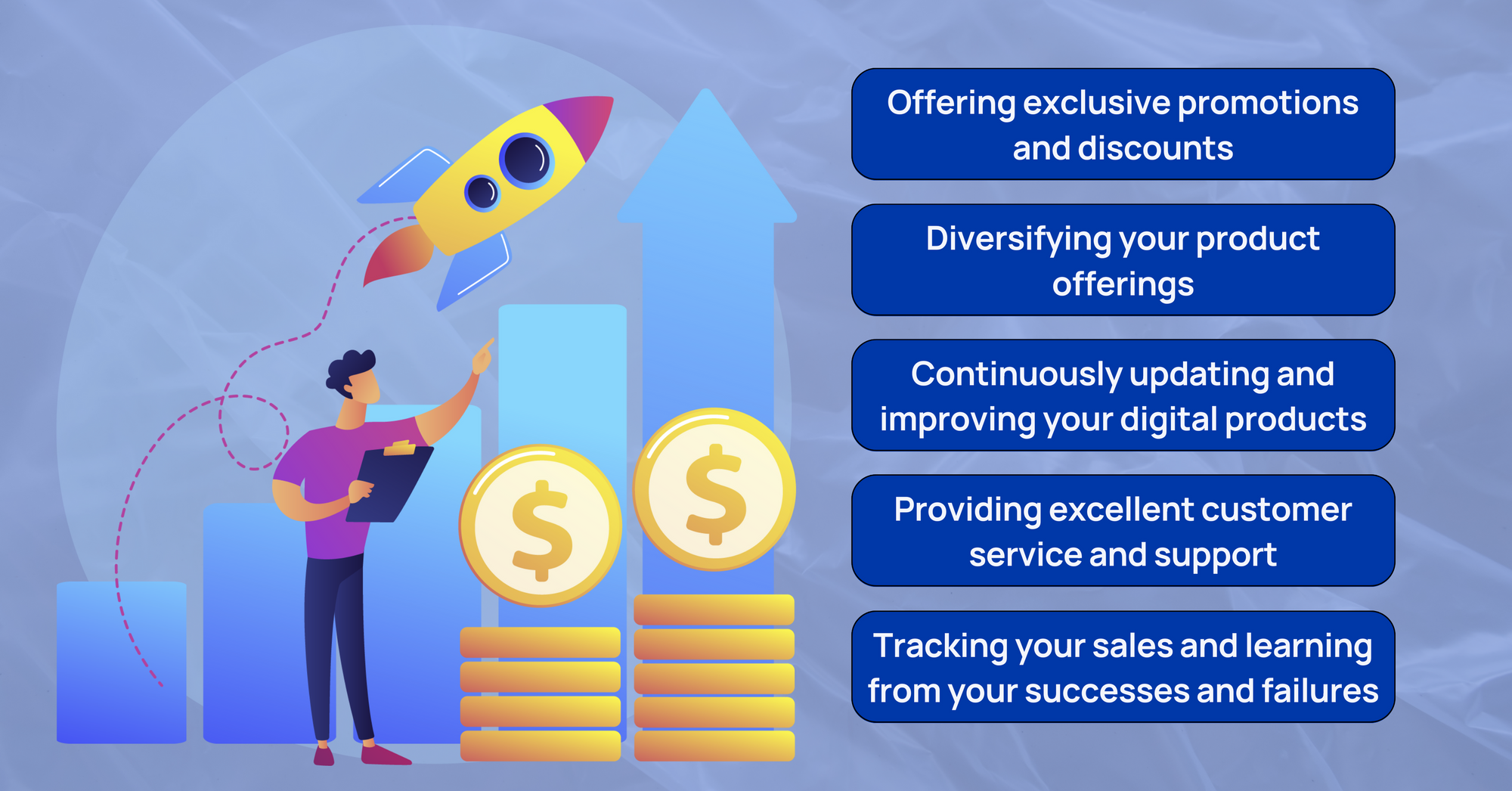 There are several strategies that can help you boost sales and grow your digital downloads business. By implementing these tips, you can improve your product offerings, enhance customer satisfaction, and learn from your successes and failures: